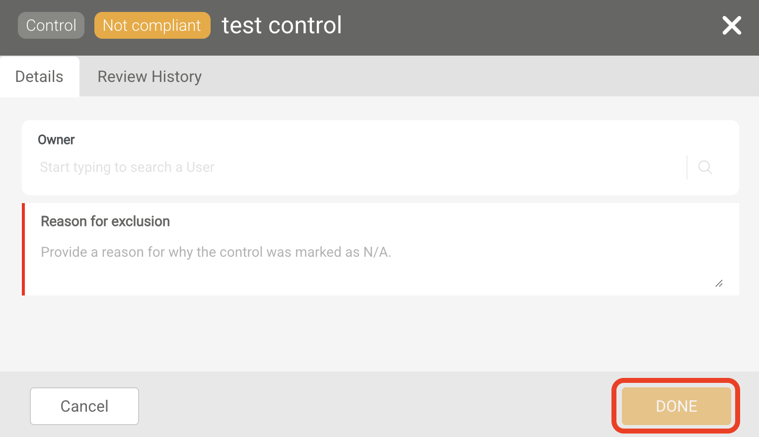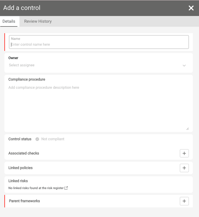 Name – Enter a name for the control. This should briefly outline the requirement the control is meeting.
