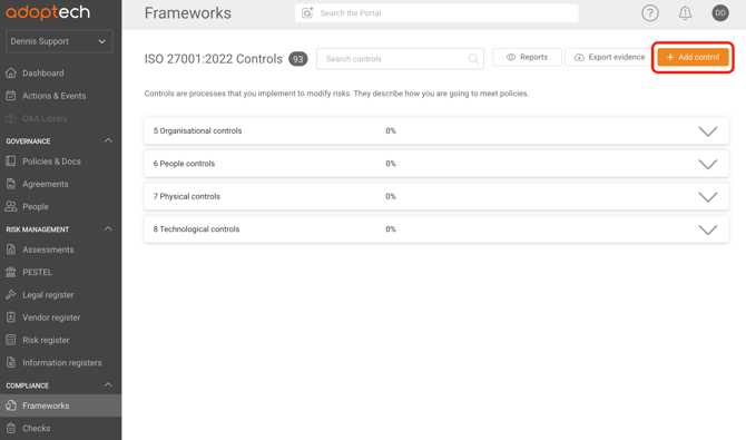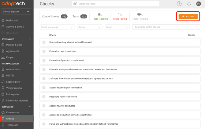 Have a look at some of the suggested Adoptech created checks. Click Add new to add your own custom control check.