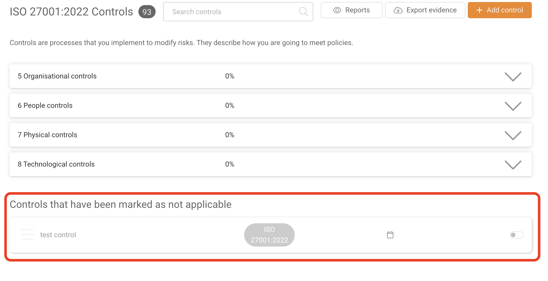 To Add a control, select the ADD CONTROL orange button in the top right-hand corner of the page.