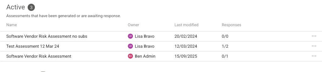 - Under the Active heading you will see assessments that you have sent out and are awaiting responses for.