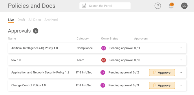 If your policy requires approval, the new version will enter the approval workflow before going live. You can manage approvals from the Pending section of your policy list — the same process as approving a brand new policy.