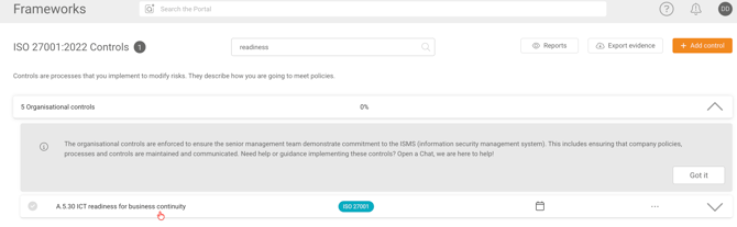 4. Repeat with every control and the next time you run the test "ISO 27001 Policies Live" for the "A.5.1 Policies for information security" control, it will complete. If it still doesn't complete, please contact Support.