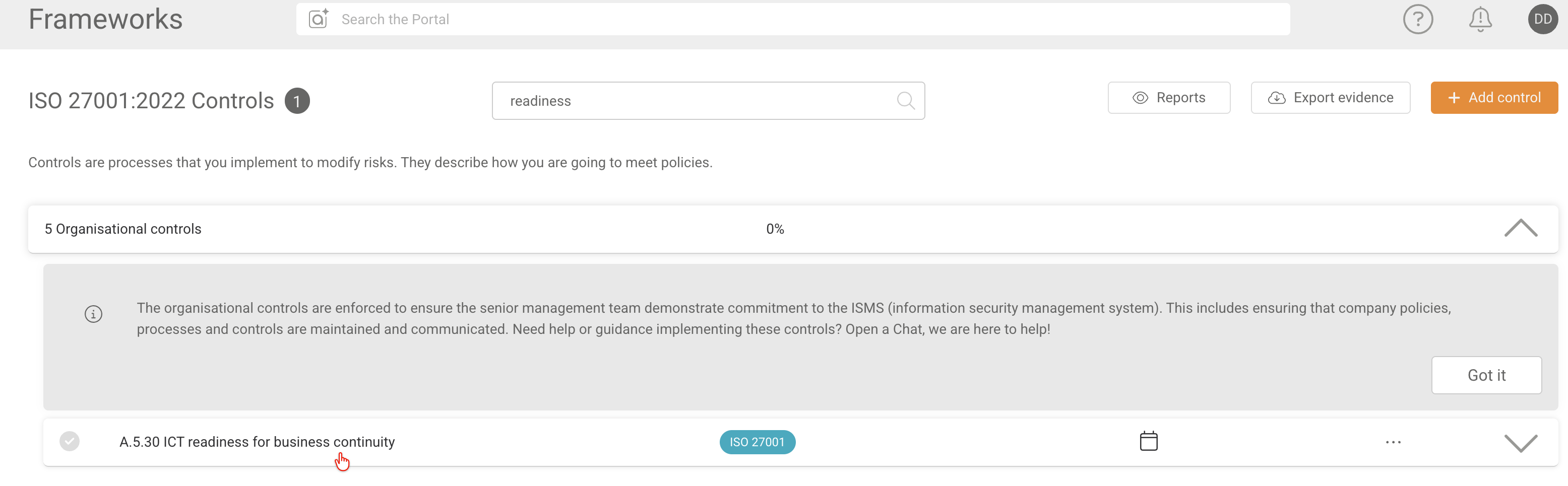 6. Repeat with every control and the next time you run the test "ISO 27001 Policies Live" for the "A.5.1 Policies for information security" control, it will complete. If it still doesn't complete, please contact Support.