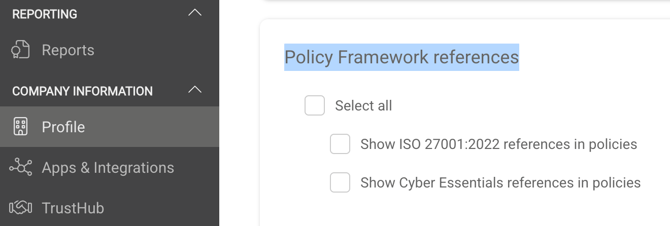 1. First, we make sure Policy Framework references are ticked for the framework you're working on.