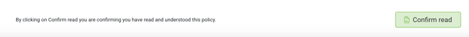 This button will remain until the user has attested that they have read the policy by reading the policy and clicking on the green Confirm Read button at the bottom of the policy.