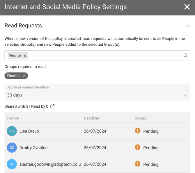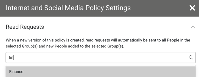 Note that before you configure the Read requests on a Policy, you must have configured user Groups on the People page. For more information on setting up Groups, read this article.