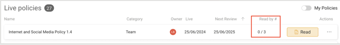 6. To see who this has been sent to you can either click on the Read by column on the Live policies table