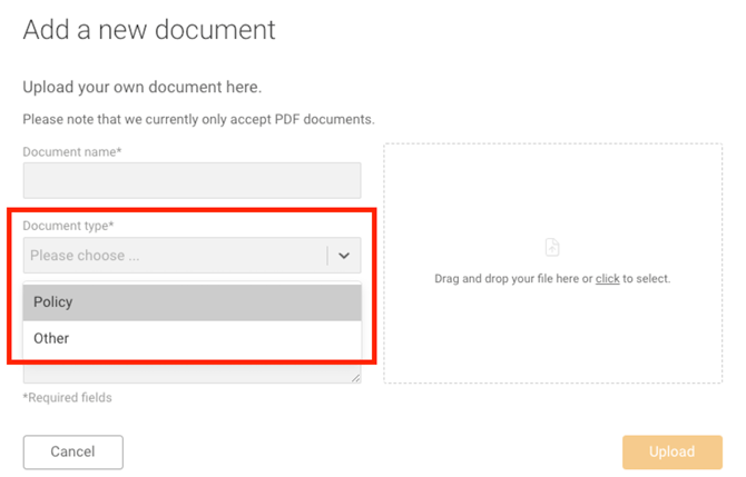 This article outlines how you upload a document such as a policy to the Policies and Docs page.