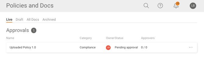 5. The document will appear both in the All Docs tab and also on the Live tab in the Approvals table